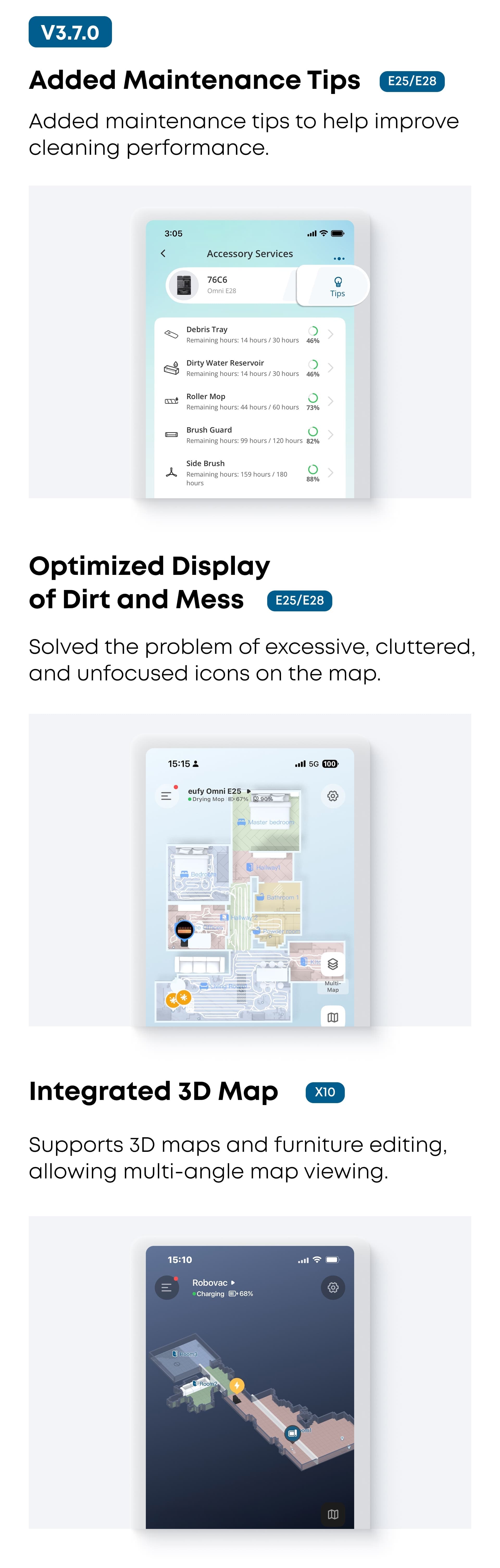 Could you let us know which eufy robotvacuum model you’re using? Also, please share your current Clean App version (you can find it by opening the side menu in the app and scrolling down to ‘About eufy Clean’ at the very bottom).