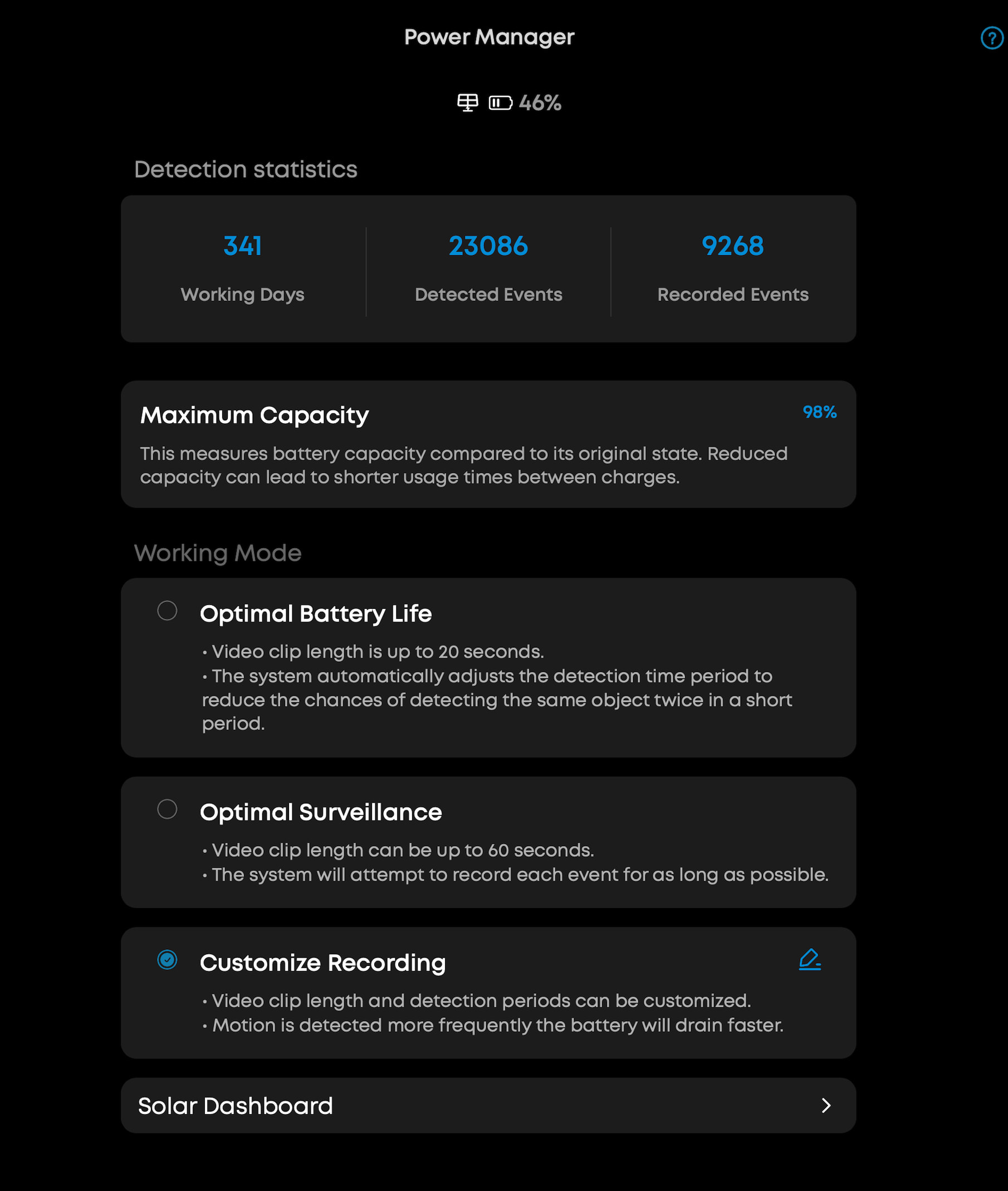 Don’t see any such settings, this is a solar unit so maybe it can’t go there